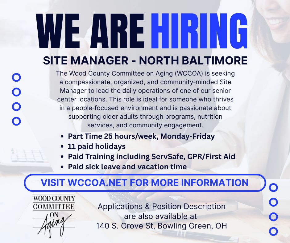 **If you would like to inquire about other services such as Home Delivered Meals, Medical Transportation, or Durable Medical Equipment Loans, please contact the WCCOA directly at 419-353-5661 for assistance.**